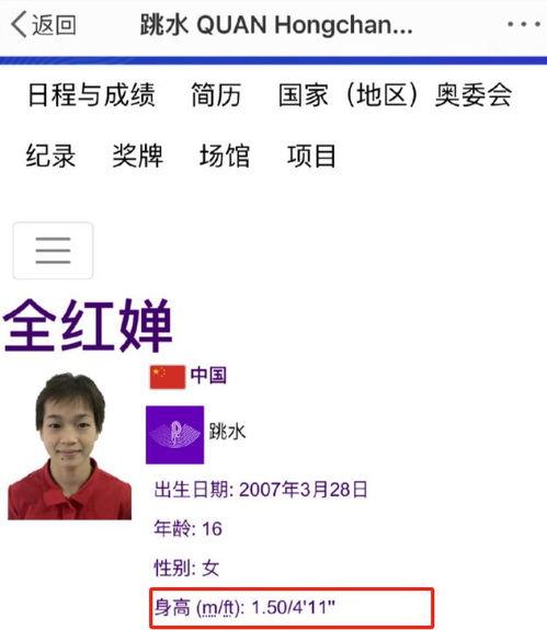 提起全红婵,不得不提她在游泳赛场上的辉煌战绩。这位年仅16岁的少女,已经在国际大赛中崭露头角,成为了中国游泳队的骄傲。而她的身高,更是让人好奇不已。